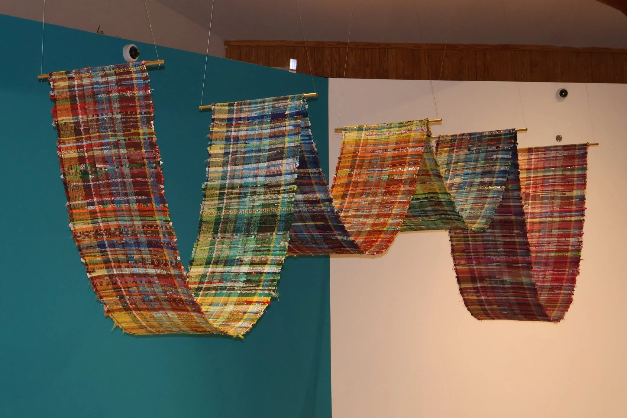 threads of change II pink lemonade golden land pink snake threads of change trash mountain #4 you're not really seeing this weaving celebration fire weaving #1 trash cube loom & doom trash weavings purple snake fire weaving #3 wavelengths weight found and formed